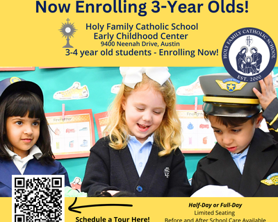 Holy Family Catholic School (HFCS) is a Diocese of Austin Catholic School established in the year 2000, serving nearly 650 students in PK3-8th Grade in the Austin Metro area. Fully accredited by the Texas Catholic Conference Accreditation Commission, Holy Family works with parents to nurture the growth of the whole child — spiritually, intellectually, socially, emotionally, and physically.