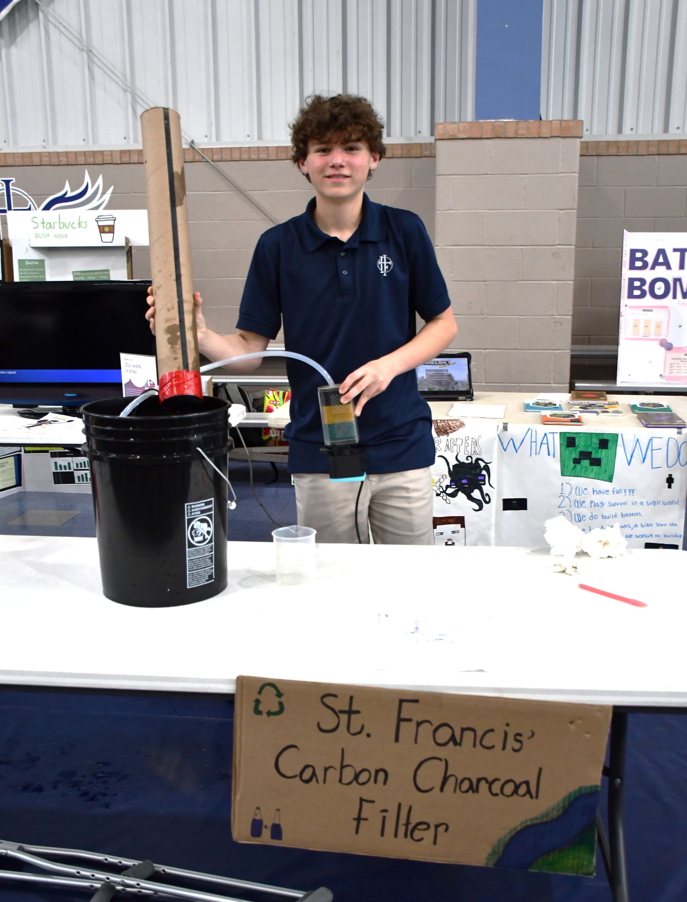 The annual STEM Night at Holy Family, March 10, was a mind-opening experience! Students designed a filtration system to remove microplastics and macroplastics from water bodies! Some students used a triple filtration system. All will be tested after spring break.